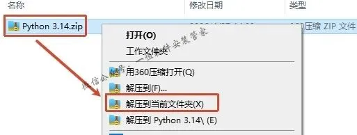 2.鼠标右击【Python3.14】压缩包选择【解压到……】。
