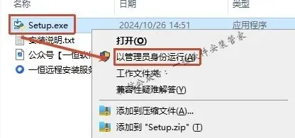3.打开解压后的文件夹,鼠标右键【Setup】选择【以管理员身份运行】。