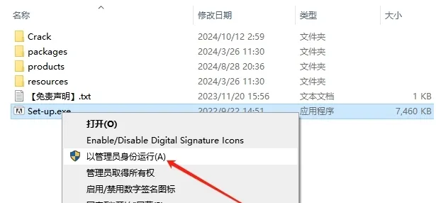 2.找到安装程序“Set-up.exe”,右键点击并选择以管理员身份运行。
