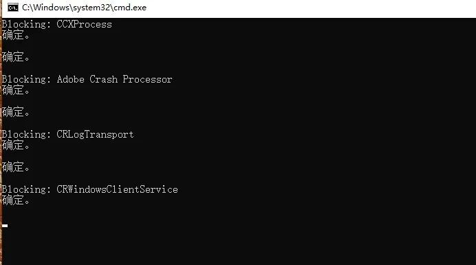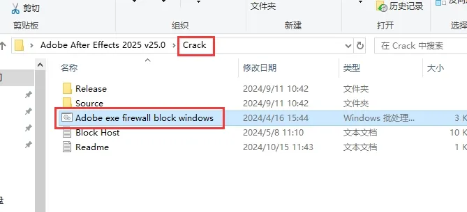 7.打开Crack文件夹,双击“Adobe exe firewall block windows.bat”以运行该文件。