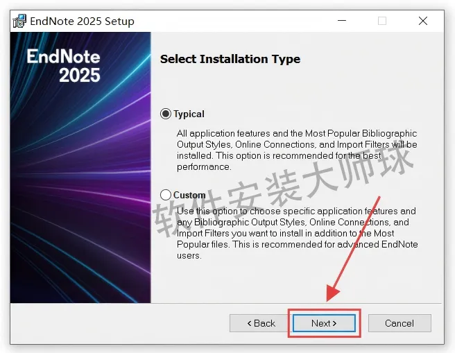 10.修改好EndNote 2025安装路径后,点击【Next】