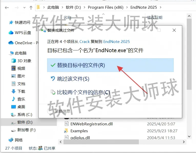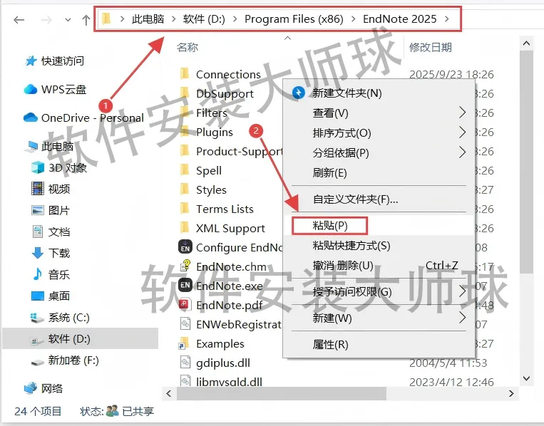 16.打开前面步骤9自己选择的EndNote 2025安装路径文件夹,把复制的4个文件【粘贴】到这里。