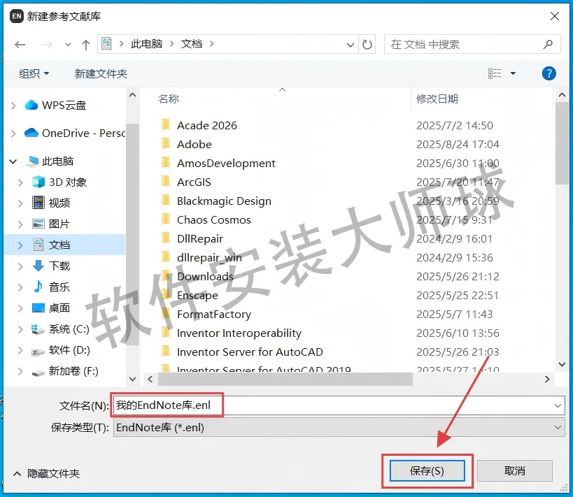 23.自定义选择EndNote文档保存位置,点击【保存】即可。