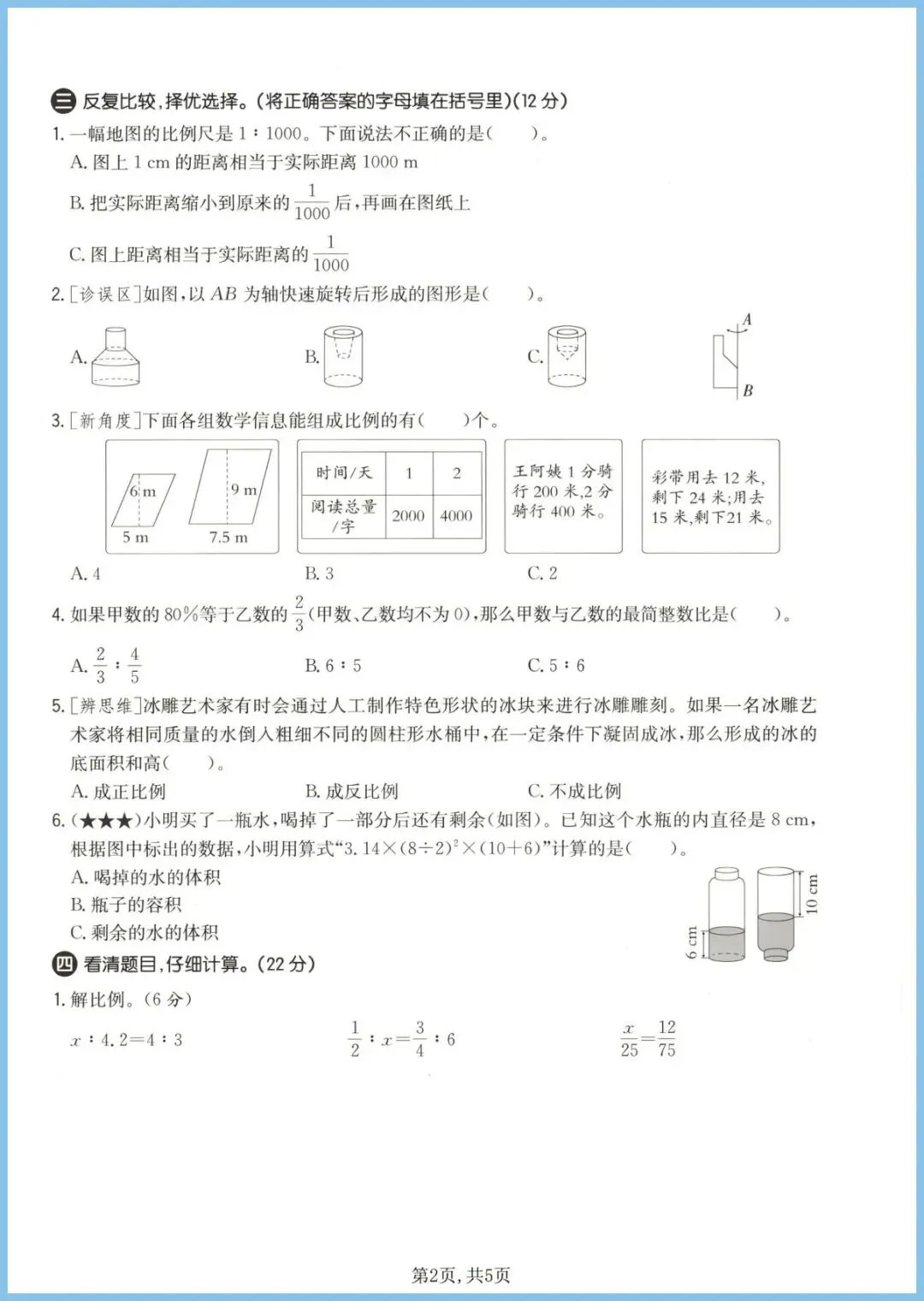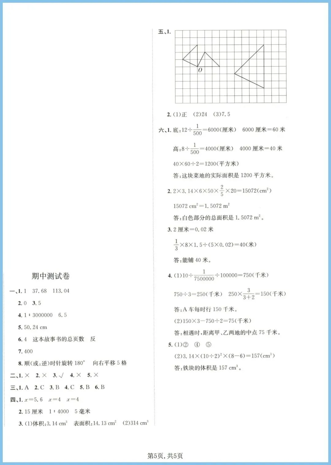 2024年春北师版六年级下册数学期中质量检测卷1,全新5页电子版,一键就能打!这份“小卷”囊括计算、应用、图形、统计四大模块,题型紧贴北师命题风格,难度阶梯清晰:基础练速度,拔高练思维,附加题挑战满分。孩子提前刷一遍,期中重点、易错点一目了然,考场少丢冤枉分!现在不练,更待何时?家长朋友们,速速保存打印,娃的期中高分就靠它啦!