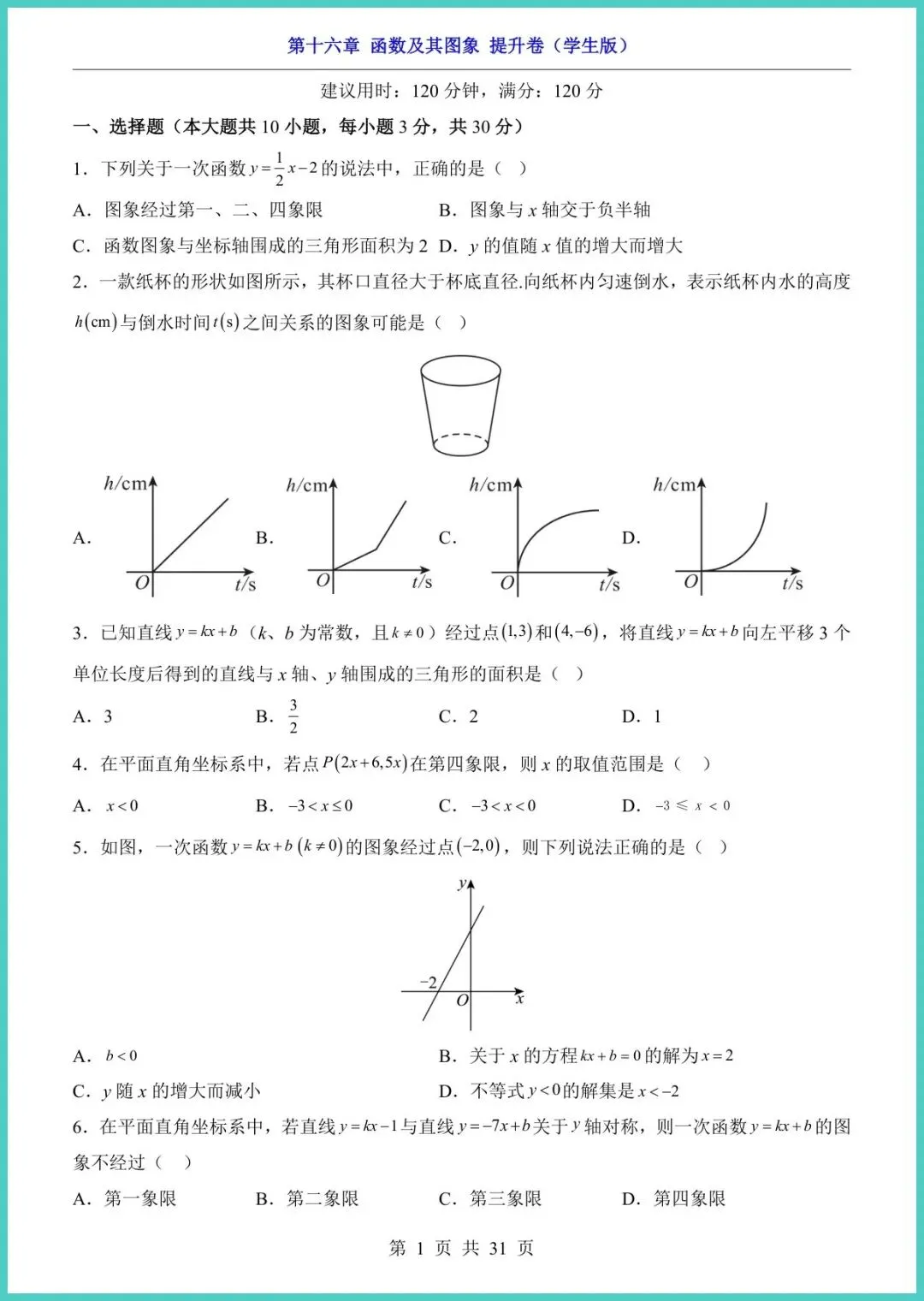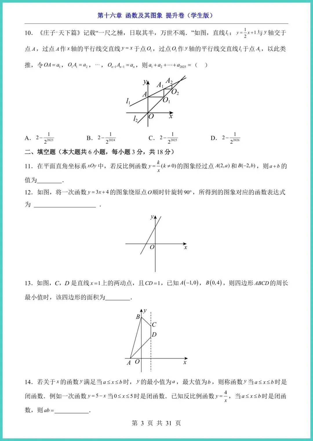 2026春华东师大版八年级下册数学第16章《函数及其图象》提升卷新鲜出炉!31页精编,紧扣新课标,专为冲刺期末、拔高培优设计。资料含知识梳理、典型例题、分层训练、易错警示、压轴挑战五大模块,图象变换、一次函数、反比例函数考点一网打尽;每题配详细思路点拨,手把手教孩子建模画图、举一反三,把抽象函数变成得分利器。想让孩子选择填空不丢分、大题多拿步骤分?现在就打印,练完这套,函数题见谁灭谁!限时电子版,家长们速存,娃的提分机会别错过!