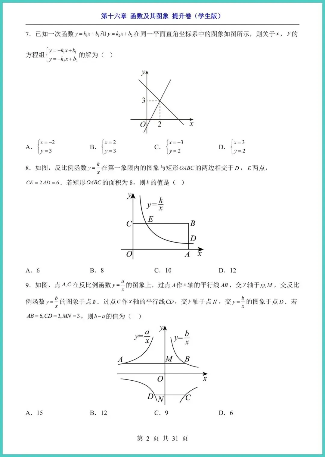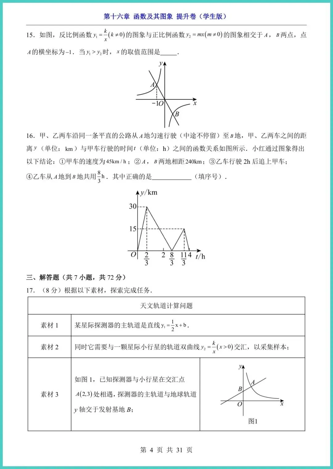 【免费下载】八年级(下)数学第16章函数及其图象_提升卷(华东师大版) | PDF完整高清电子版可打印