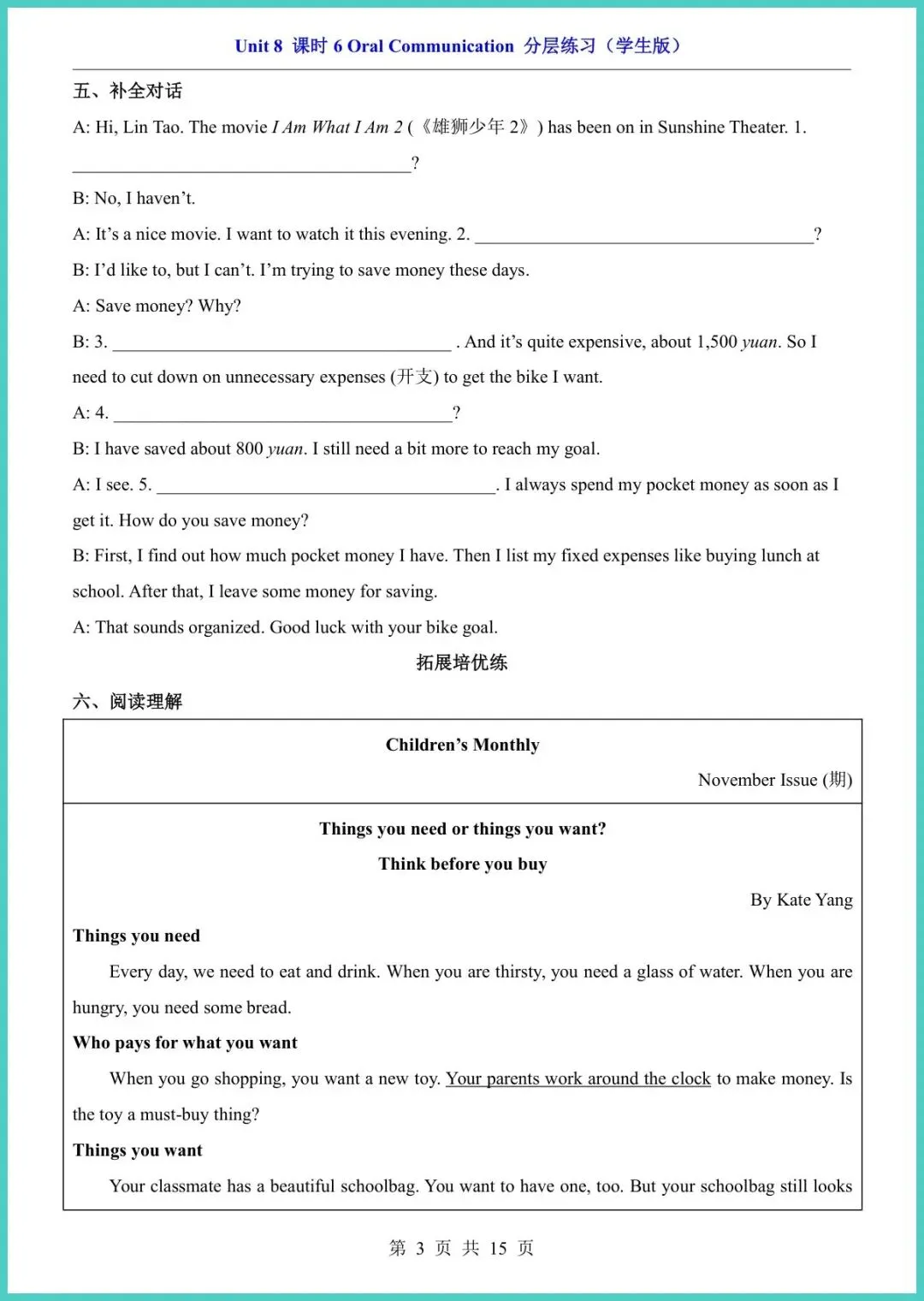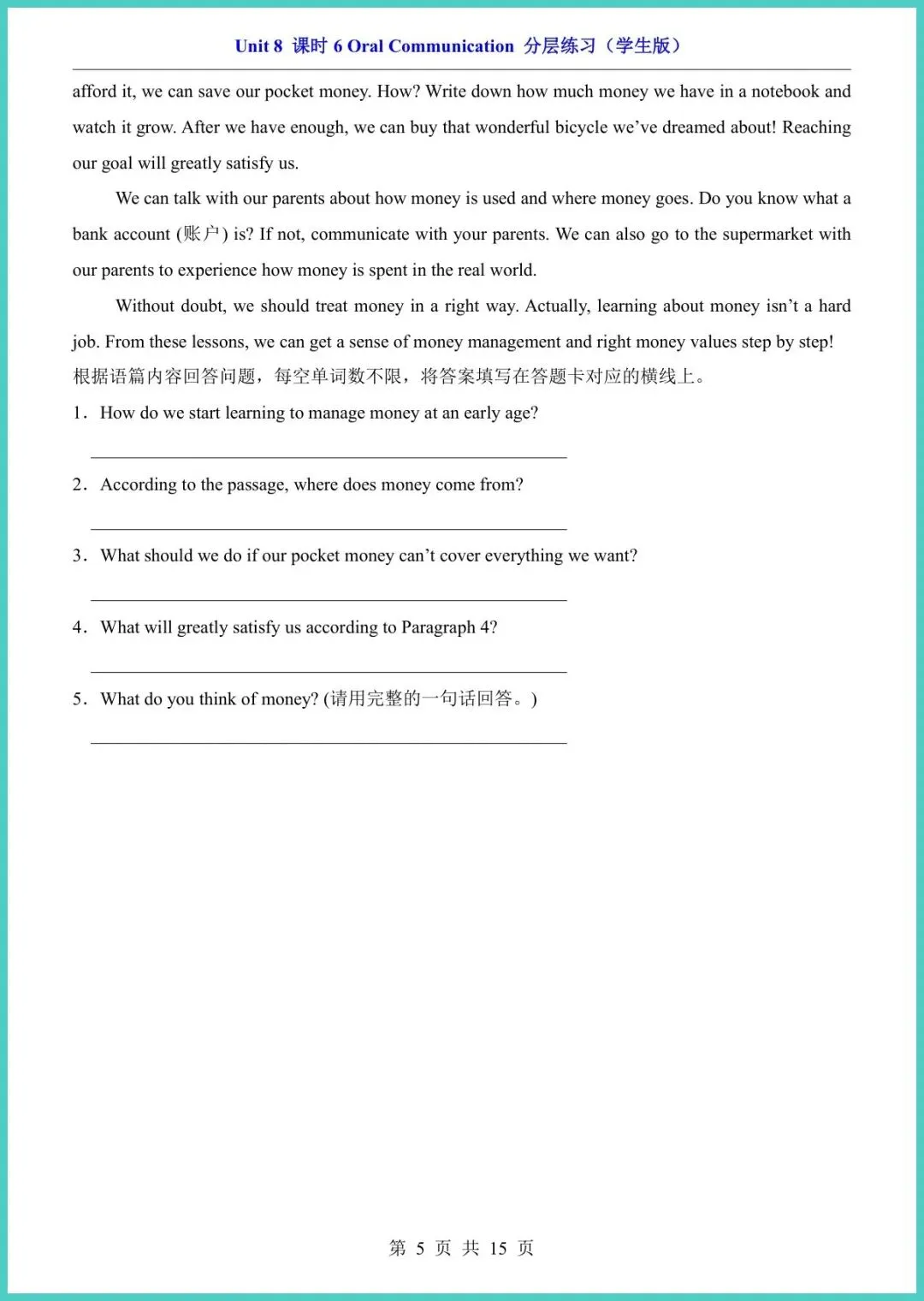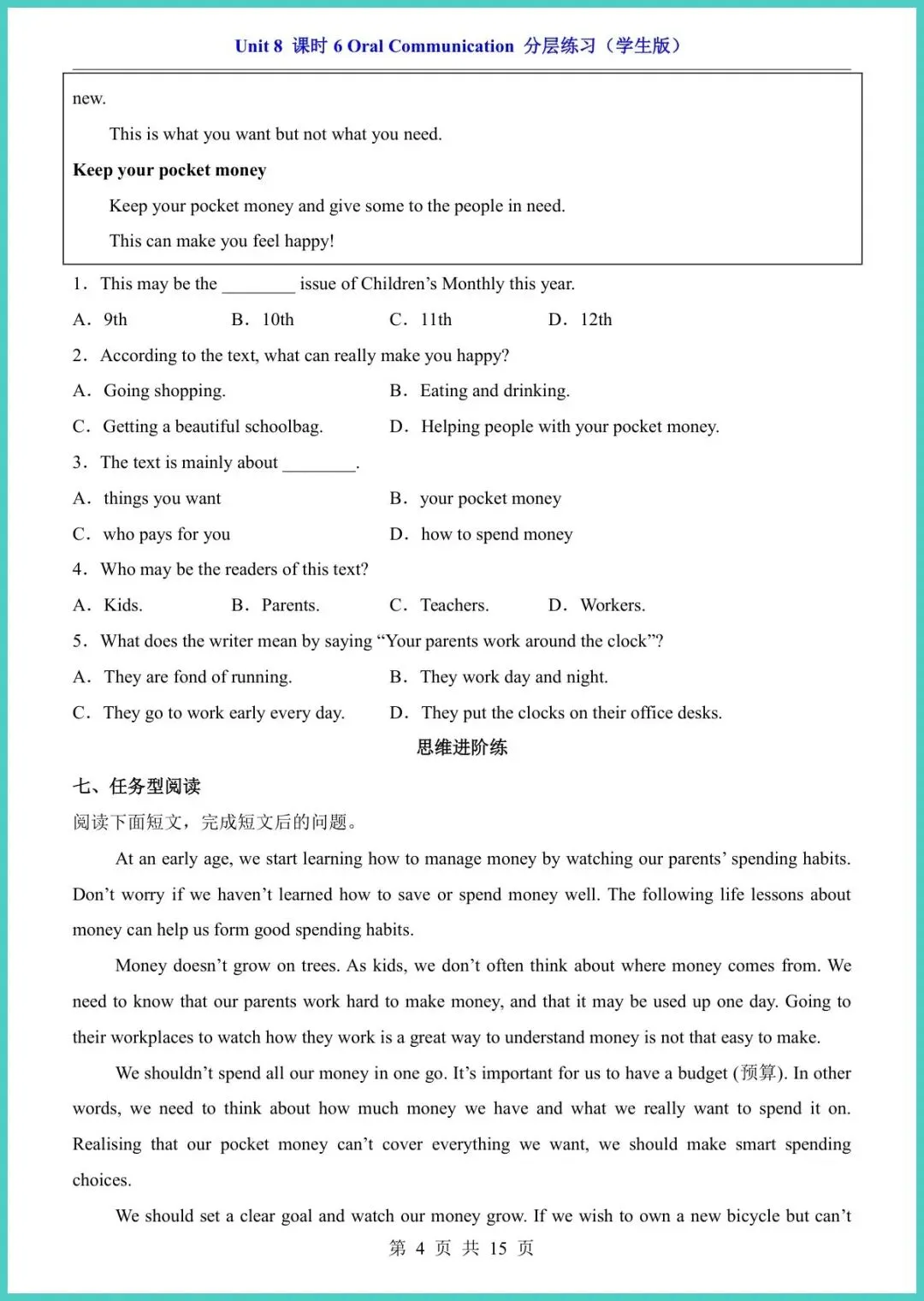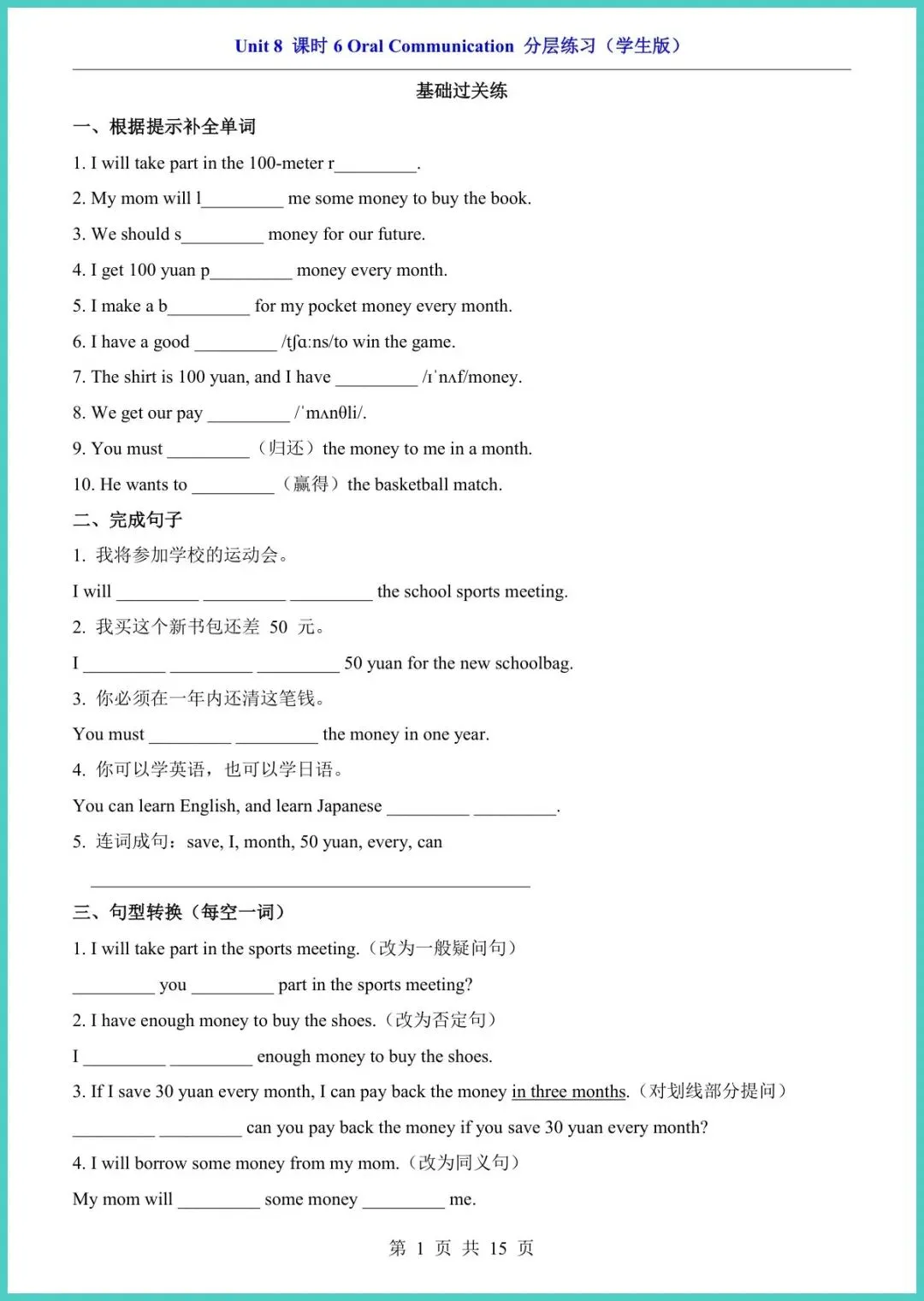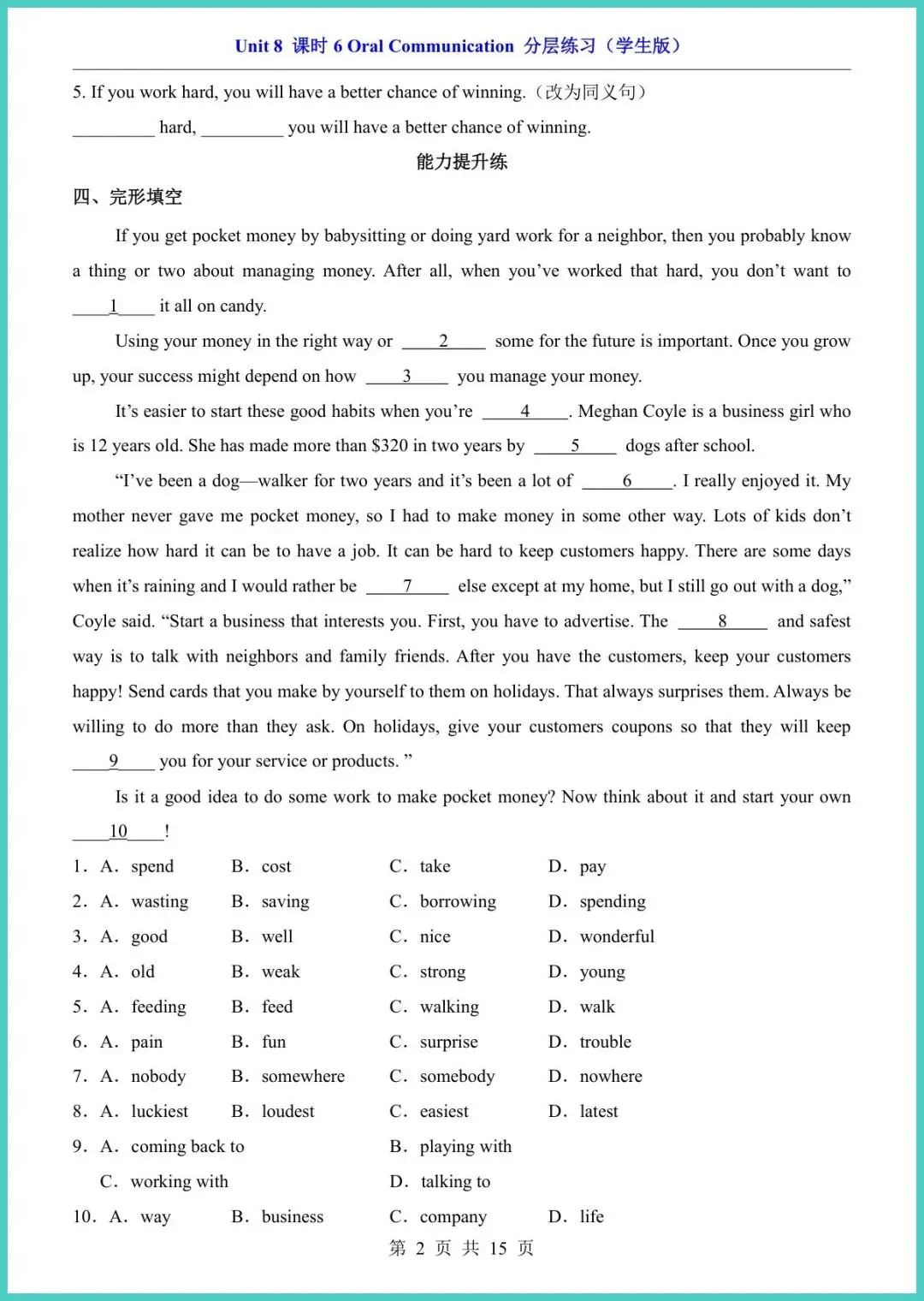 2026春仁爱版八年级下册英语Unit 8课时6分层练习,新鲜出炉15页,电子版一键打印!基础巩固、能力拔高、拓展冲刺三层递进,词汇句型、语法阅读、写作任务全覆盖,精准对标课堂重难点,让孩子学完立刻练,薄弱点当场现形,成绩悄悄往上爬。现在不练,考试慌成一片;现在打印,底气多十分!需要的家长赶紧保存,今晚就安排,娃的逆袭从这套小练开始!
