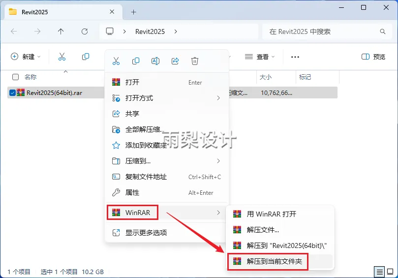 1.右键【下载的安装包】选择【解压当前文件夹】