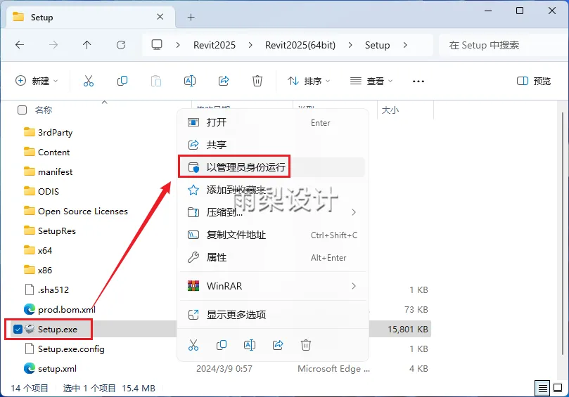 3.右键【Setup.exe】选择【以管理员身份运行】