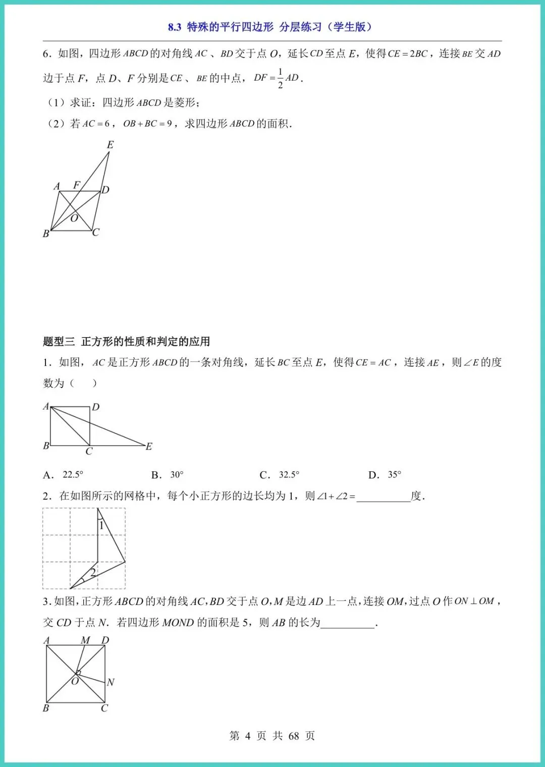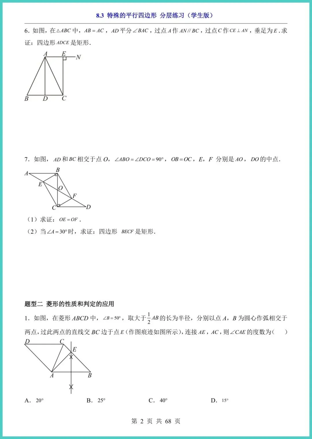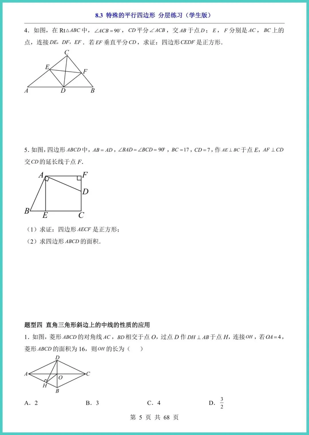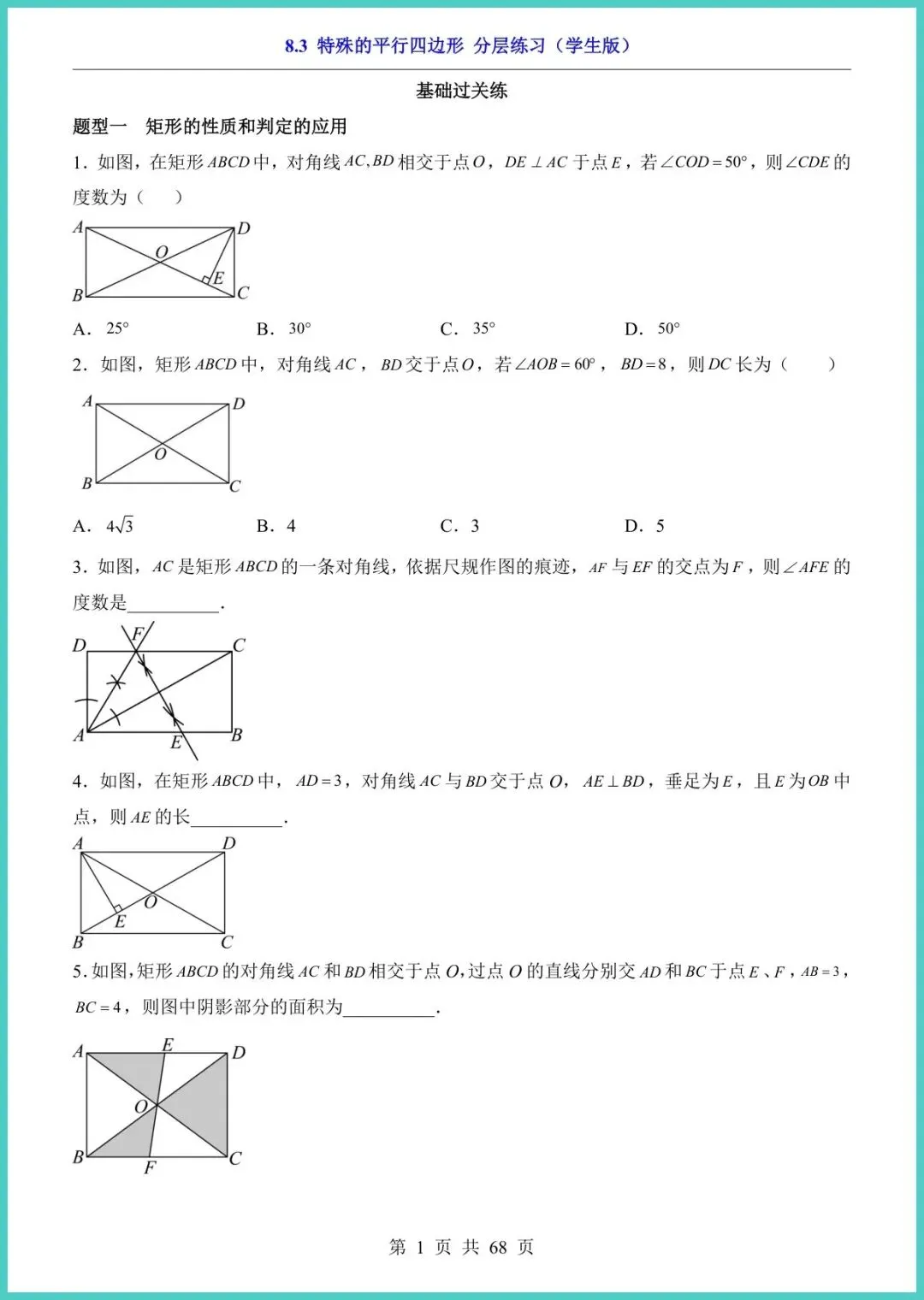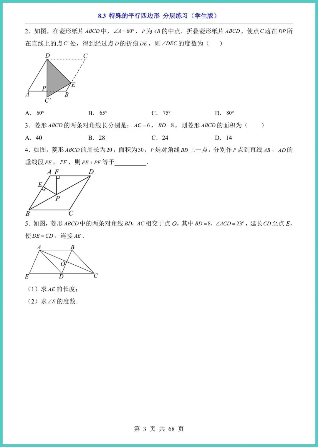 【免费下载】八年级(下)数学8_3_特殊的平行四边形_分层练习(青岛版) | PDF完整高清电子版可打印