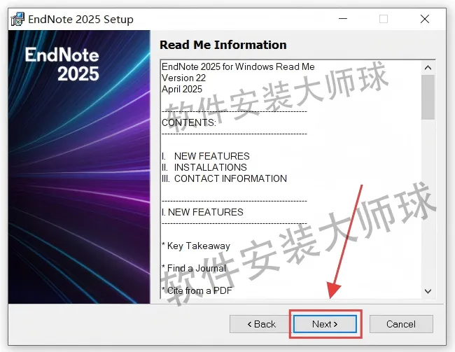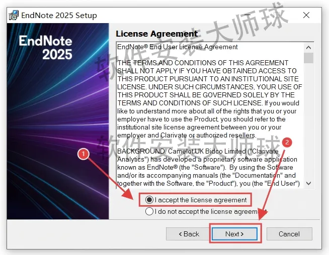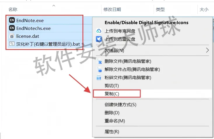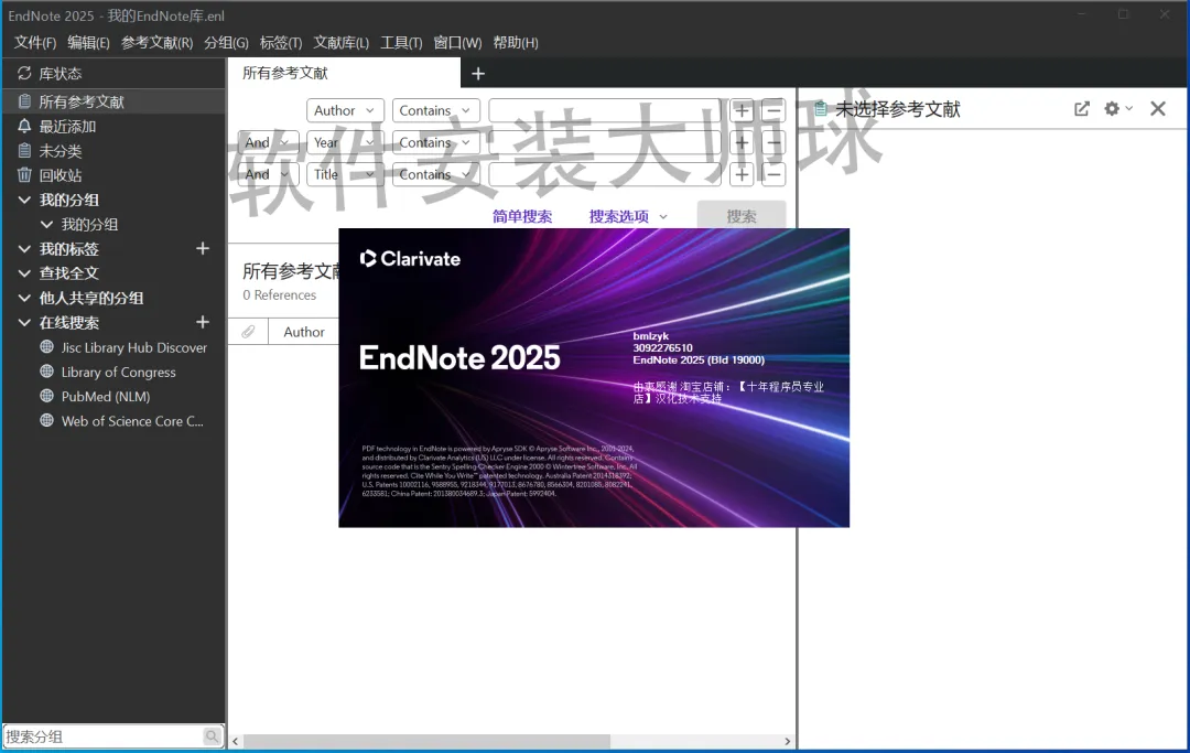 (提示:退出杀毒再解压,解压不了可安装Winrar解压软件)1.下载解压EndNote 2025压缩包打开文件夹。2.选中【Setup】右键点击【以管理员身份运行】打开EndNote 2025的安装。4.选择【I would like...】再点击【Next】。6.选择【I accept the...】再点【Next】。8.点击【Browse...】更改EndNote 2025软件的安装路径。9.例如:可以把地址栏首字母C改成D,代表EndNote 2025软件将安装到电脑D盘,选择好后点击【OK】。(请记得此路径,后面使用到)10.修改好EndNote 2025安装路径后,点击【Next】14.回到解压出来的EndNote 2025安装文件夹,打开【Crack】文件夹。15.选中这四个文件,右键选择【复制】。(如打开没有文件或者缺少文件,是解压没有退出杀毒软件和防火墙被拦截删除了,关闭重新解压即可)16.打开前面步骤9自己选择的EndNote 2025安装路径文件夹,把复制的4个文件【粘贴】到这里。17.弹窗点击【替换目标中的文件】。(没有弹窗代表粘贴位置不对)18.选中刚粘贴过来的【汉化补丁】右键选择【以管理员身份运行】。20.回到电脑桌面,双击【EndNote汉化版图标】打开软件。22.点击【Create a new library】。23.自定义选择EndNote文档保存位置,点击【保存】即可。24.中文版EndNote 2025软件到此安装完成,可以正常使用!1.有关资源均收集来自网络与网友提供,任何涉及商业盈利目的的均不能使用,否则后果将由您自己承担。