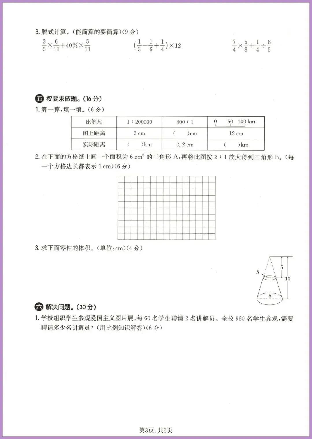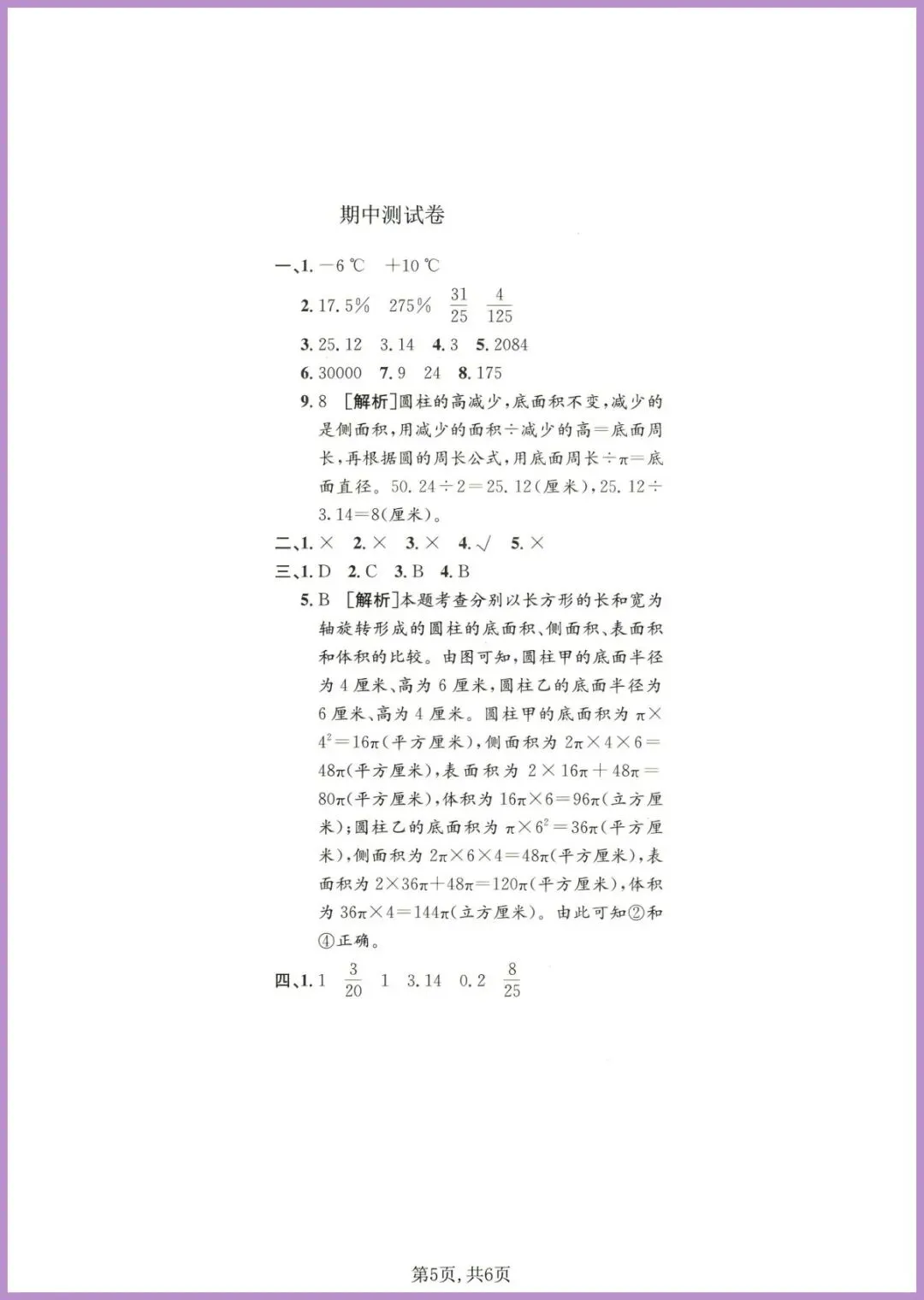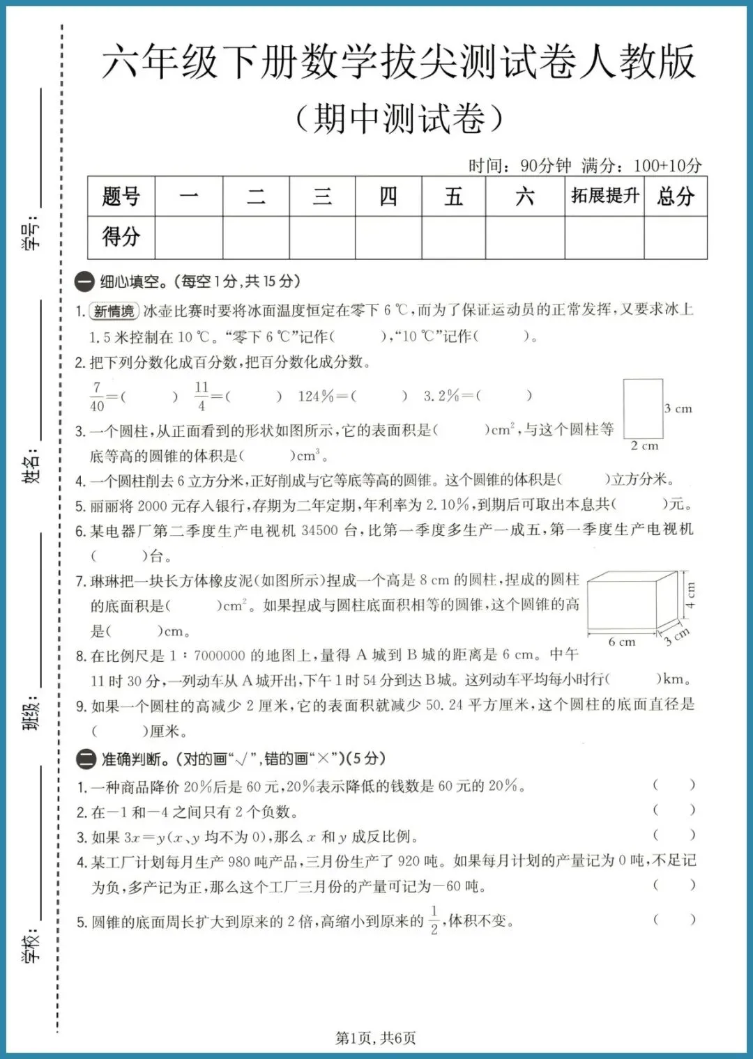 【免费下载】六年级(下)数学_期中拔尖测试卷《人教版》 | PDF完整高清电子版可打印