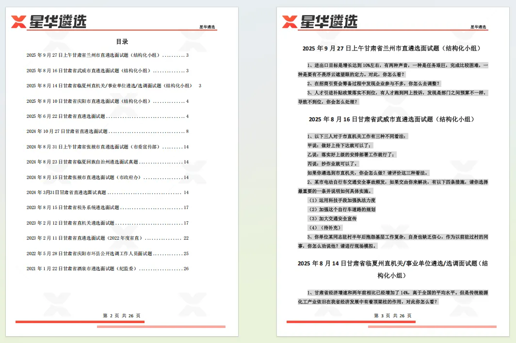 2025 年 9 月 27 日上午甘肃省兰州市直遴选面试题(结构化小组)