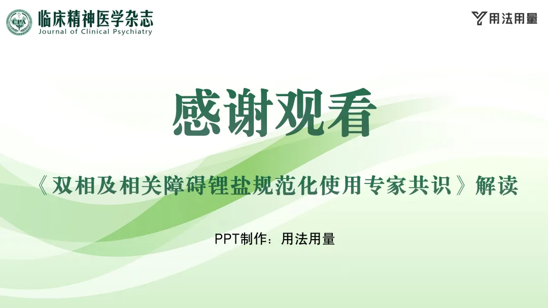 免费下载丨《双相及相关障碍锂盐规范化使用专家共识》解读PPT