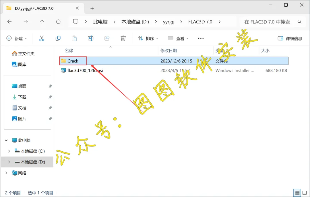 11.返回到FLAC3D 7.0文件夹,双击打开【Crack】文件夹