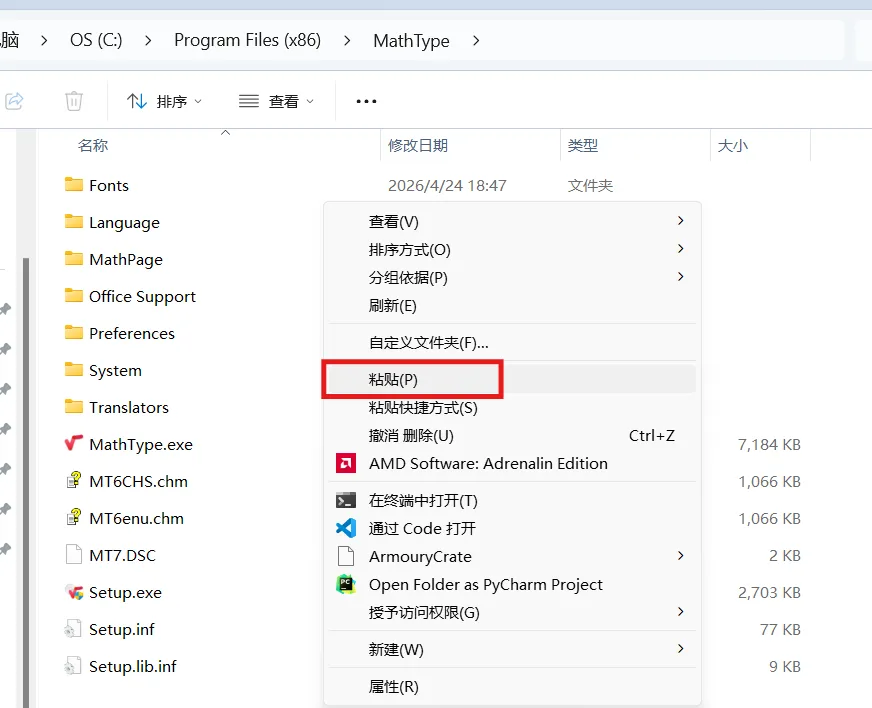 2、打开解压后的文件夹,运行【MathType-win-zh-7.8.2.441.exe】进行安装4、显示已成功安装后,返回解压后的文件夹,进入【crack】文件夹,复制其中的【MathType.exe】文件5、找到第3步MathType的安装路径,将复制的【MathType.exe】文件粘贴在里面MathType主要功能:【1】基础公式编辑功能:主要内容包含数字字母、运算符号、括号、希腊字母、特殊常量输入,支持高等数学、大学物理、工程学科基础公式快速编写【2】数理模板套用功能:主要内容包含分式、根式、上下标、对数、三角函数、反三角函数专用模板,一键插入快速构建常规数理公式结构【3】微积分编辑功能:主要内容包含定积分、不定积分、多重积分、极限、求和、连乘、导数、偏导数模板,满足高数计算与推导书写需求【4】线性代数编辑功能:主要内容包含矩阵、行列式、向量、增广矩阵、阶梯矩阵、大括号方程组模板,支持行列增减与格式调整【5】多行公式排版功能:主要内容包含公式自动换行、等号对齐、分段推导、分类表达式、多行算式统一排版,适用于大题步骤书写