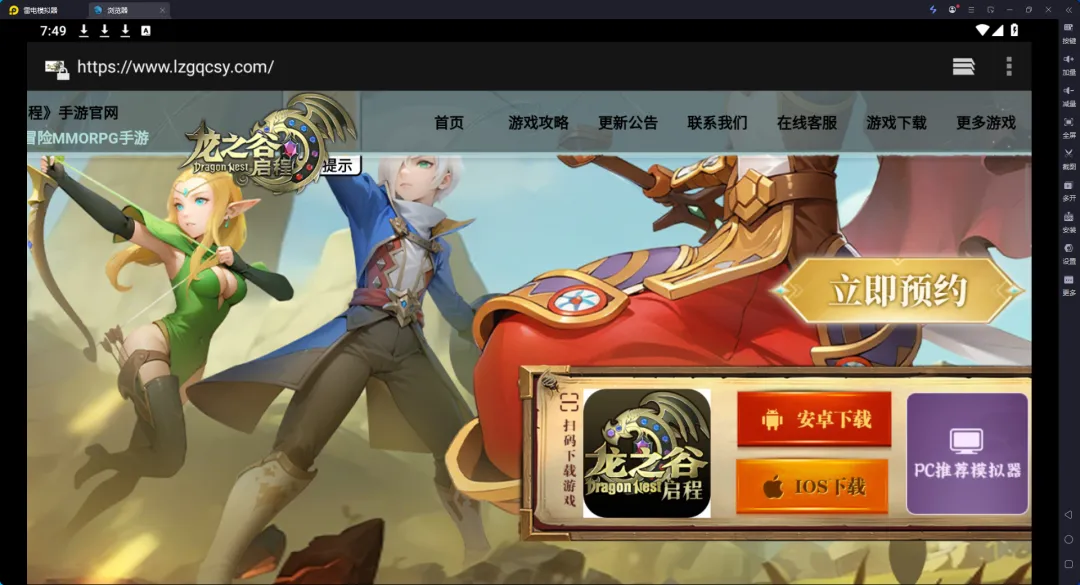 - 安装游戏:模拟器安装完成后,打开模拟器内置的浏览器输入上述官网点击安卓下载,会自动下载并安装《龙之谷:启程》手游客户端。