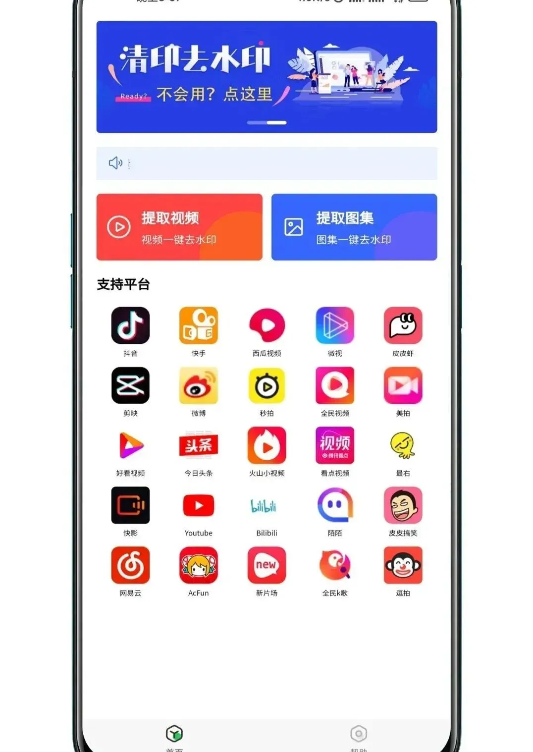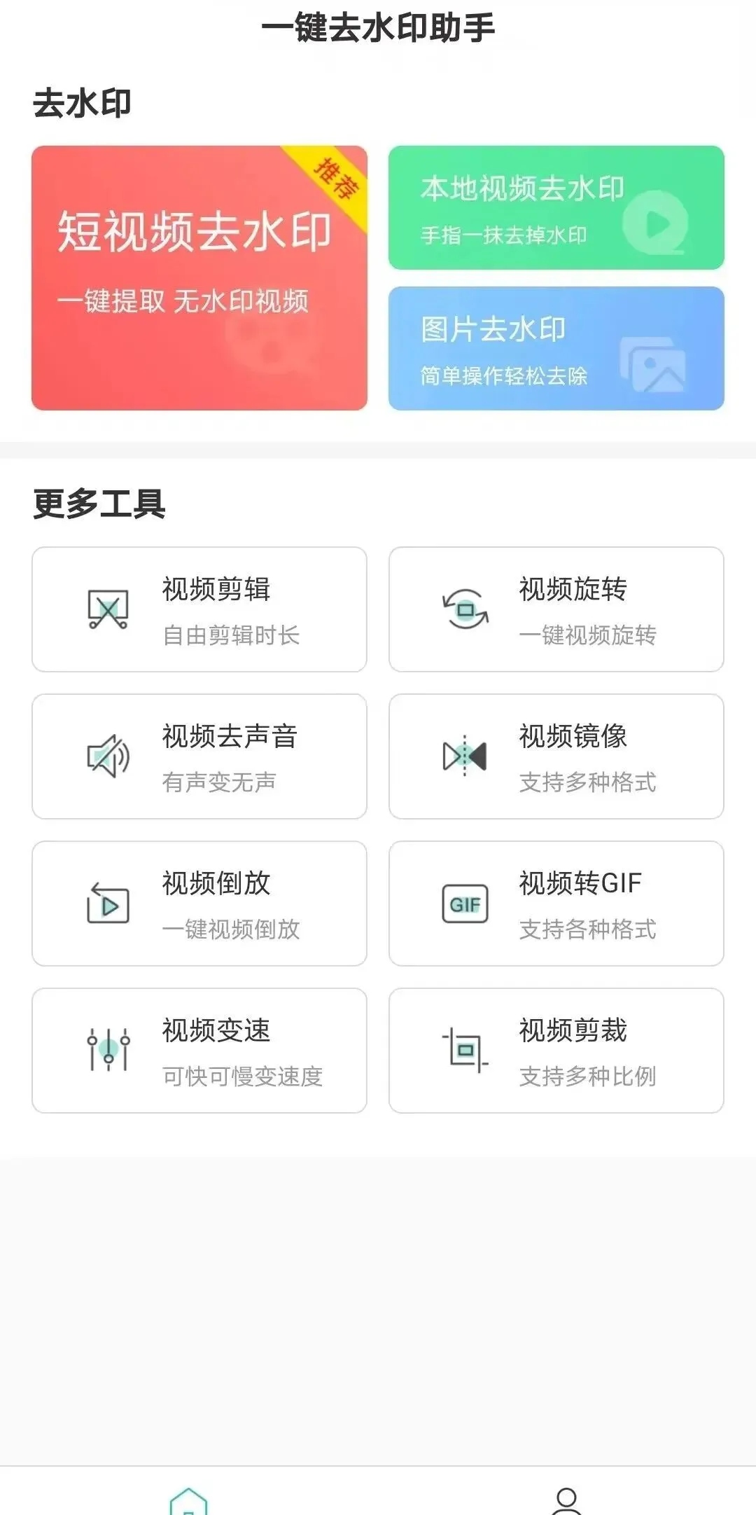 去水印界的神器。它功能强大,用起来还特别简单。界面简洁明了,除了去水印,还能给图片、视频添加水印。视频去水印是它的强项,抖音、西瓜等好多主流平台的视频都能处理。要是看到喜欢的视频,因为水印不好看,把链接复制到这个 app 里,就能拿到无水印的视频。而且它还有好多视频编辑功能,像裁剪时长、调整尺寸、视频合成、录音、添加字幕、倒放、变速这些都能做,真的太实用了。