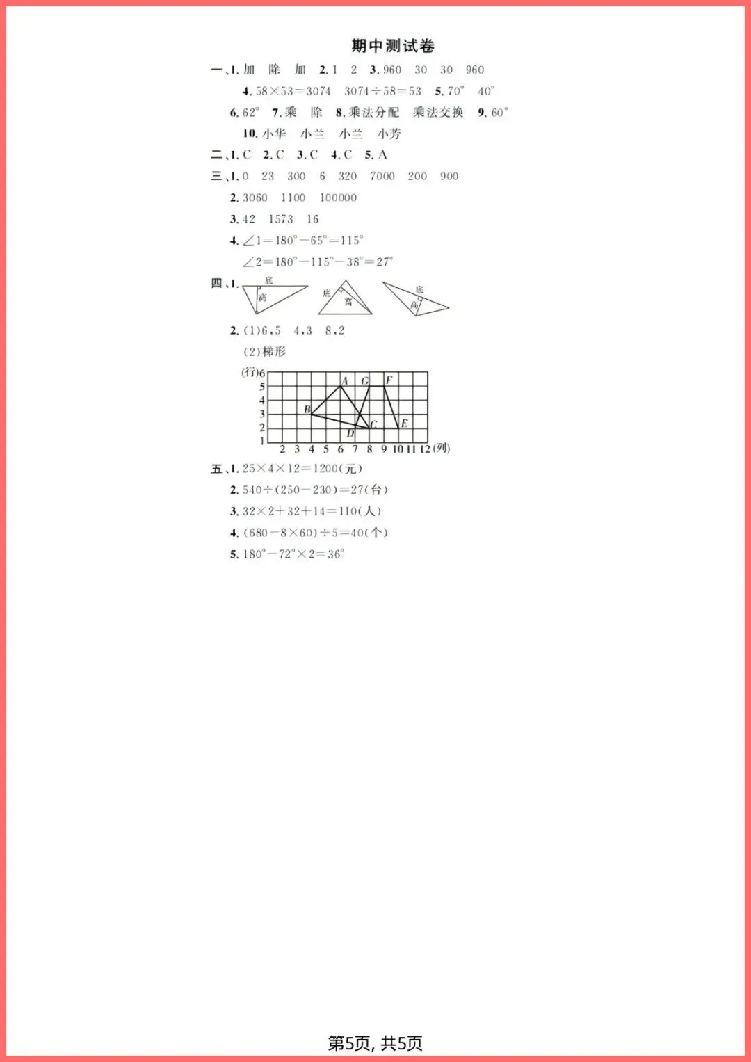 【免费下载】四年级(下)数学_期中拔尖测试卷《西师版》 | PDF完整高清电子版可打印