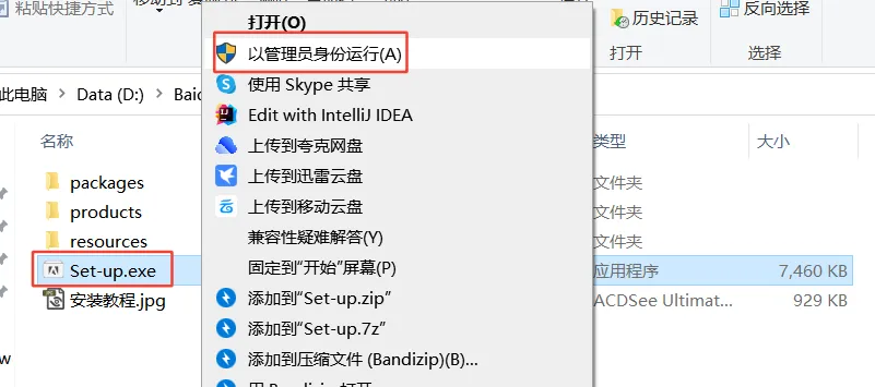 2.打开解压后的文件夹,鼠标右击【Setup】选择【以管理员身份运行】
