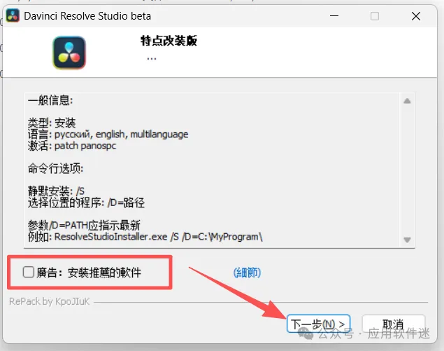 3、取消勾选广告,点【下一步】。
