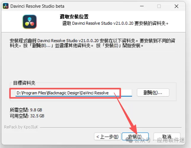 4、选择目标文件夹,点【安装】。