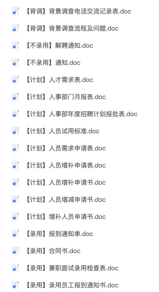 本文分享的是:HR必备表格工具包,内含500份实用表格。涵盖招聘、工资、绩效、考勤、入离职等全流程。有招聘需求审批表、薪资核算表、KPI达成统计表、月度考勤汇总表、离职交接清单等各类模板,可提高工作效率,规避管理风险。