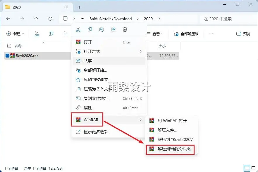 1.右键【下载的安装包】选择【解压当前文件夹】