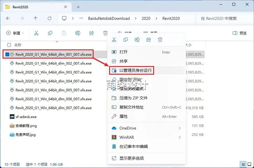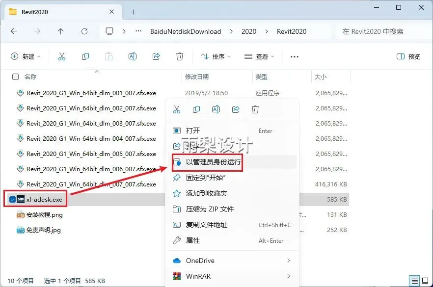 15.返回安装包;右键【xf-adsk.exe】选择【以管理员身份运行】