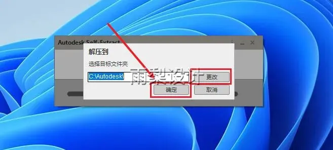 3.选择解压目录,如需更改点【更改】,不需要点【确定】(安装完可删除)