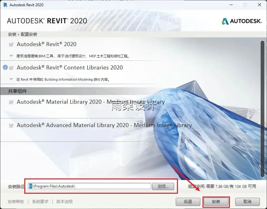 7.安装路径前面的C改成D,点击【安装】