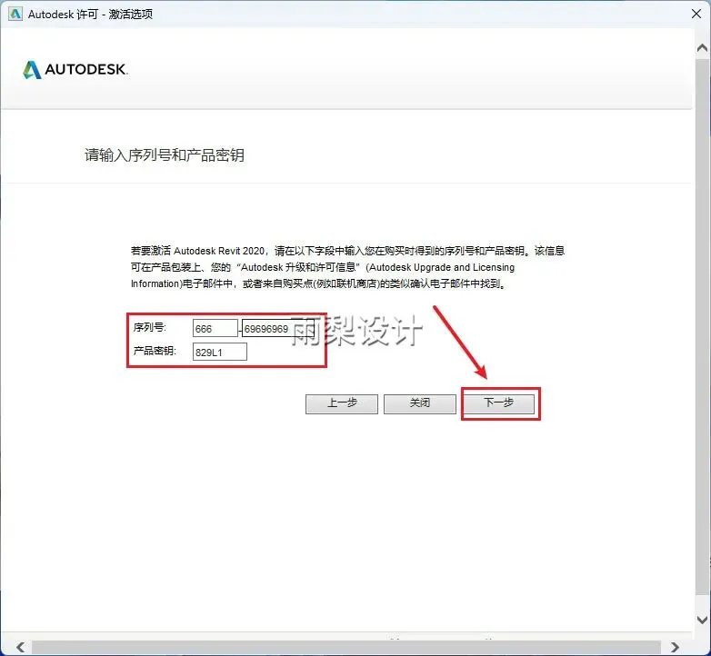 12.序列号输入【666-69696969】,密钥输入【829L1】,点击【下一步】