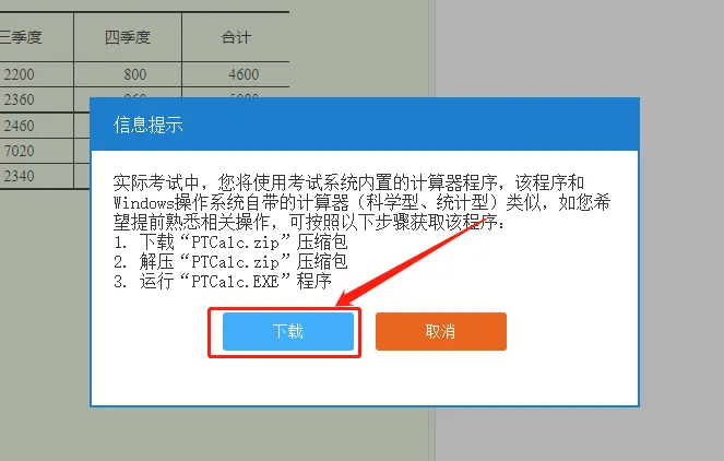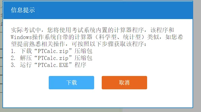 大家在进入考试系统后,按照规定下载计算器小程序,而后页面就会出来计算器弹窗,需要的时候用鼠标点击使用即可。