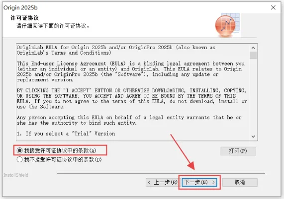 5.欢迎使用Origin 2025b安装程序,点击下一步。