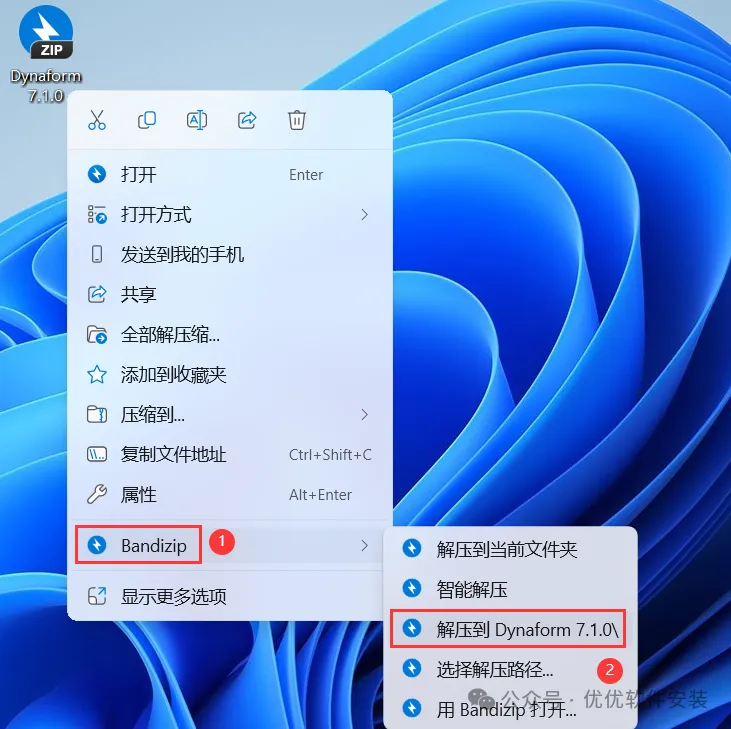 1、下载Dynaform 7.1.0软件安装包到电脑上,右键选择【解压到Dynaform 7.1.0\】