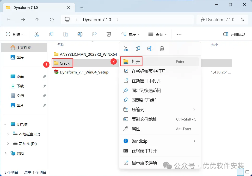 15、回到Dynaform 7.1.0文件夹,找到【Crack】文件夹,右键【打开】它