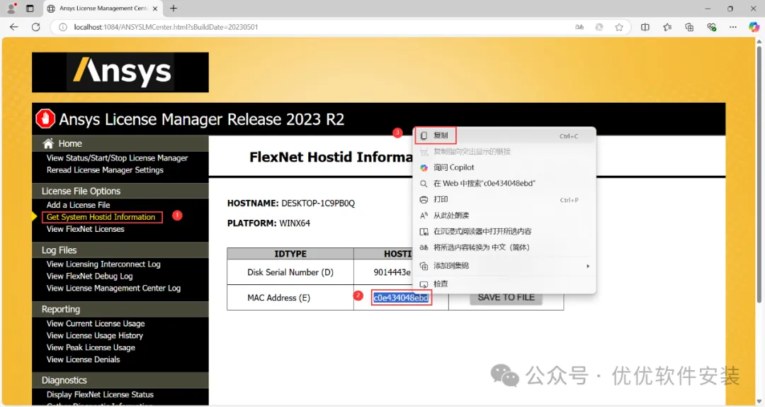 20、自动打开浏览器,点击左侧的【Get System Hostid Information】,右键复制MAC Address(E)的HOSTID值