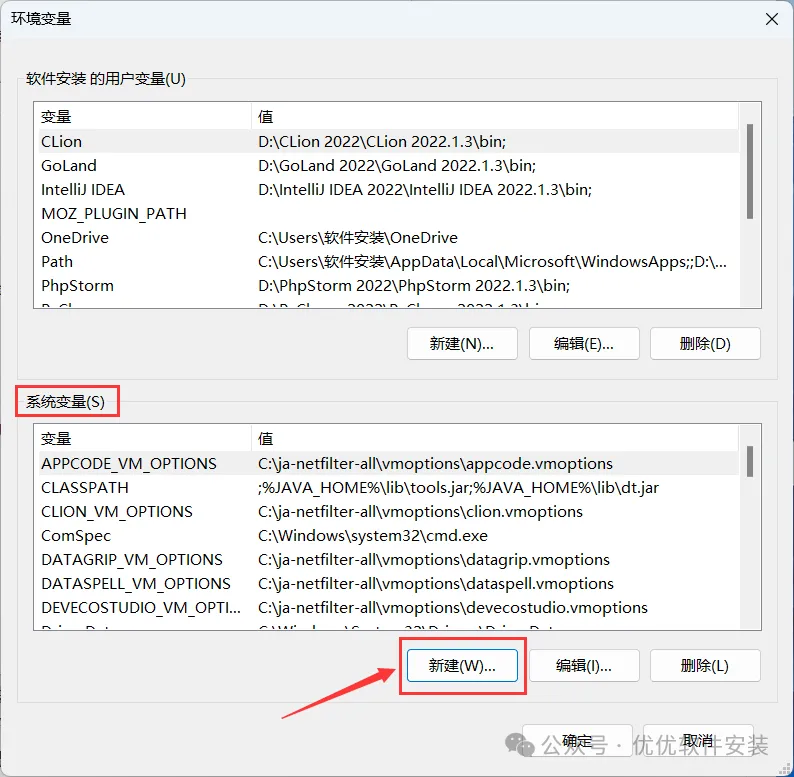 35、在系统变量一栏,点击【新建】