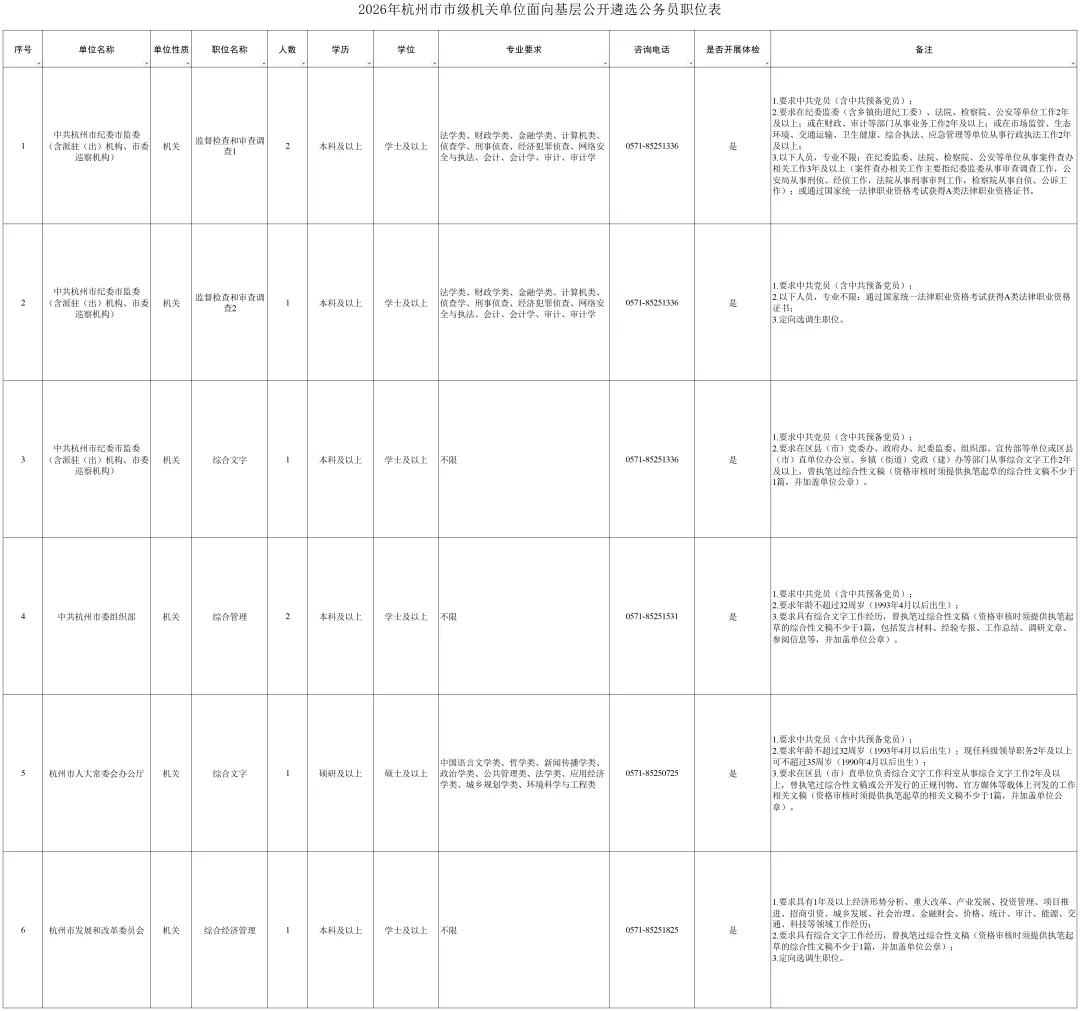 【浙江遴选】2026年杭州市级机关单位面向基层公开遴选21名公务员公告