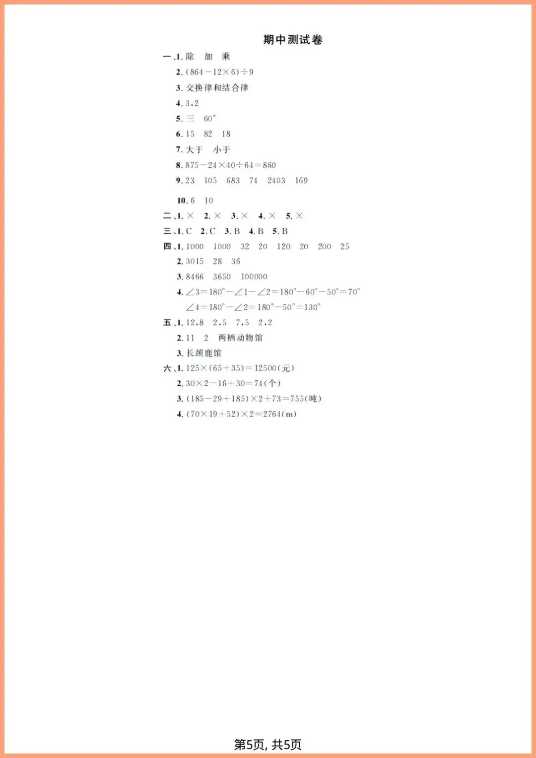 【免费下载】四年级(下)数学_期中模拟测试卷《西师版》 | PDF完整高清电子版可打印