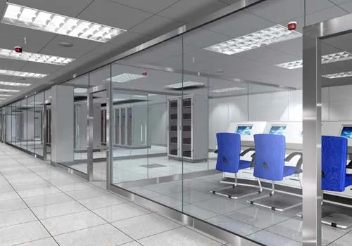 建筑装修工程,是整个机房的基础,它主要起着功能区划分的作用,不仅包括一般机 房装修所需要的铺抗静电地板、安装微孔回风吊顶,还包括为放置机架、服务器等设备的 预留空间。